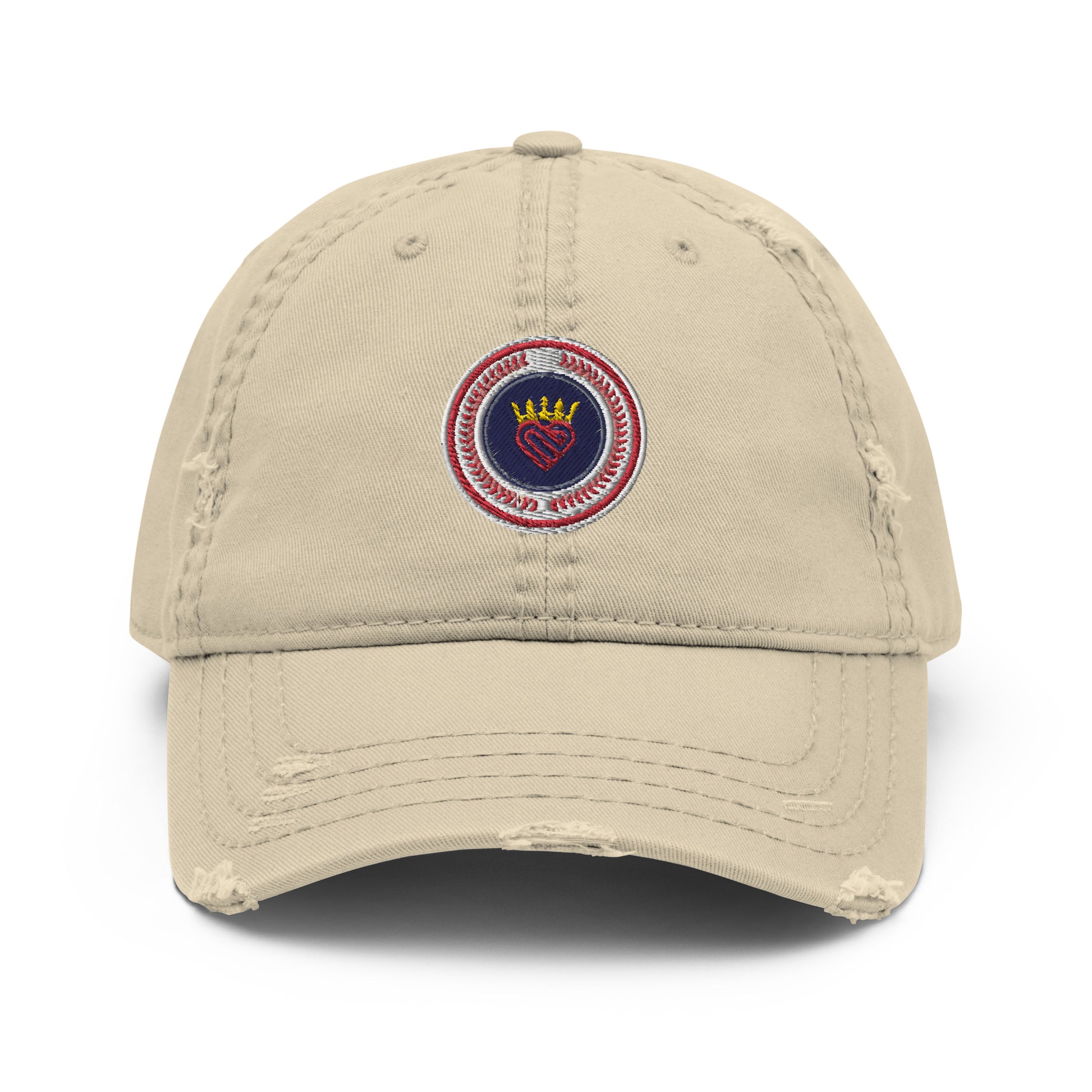 Expand your headwear collection with this fashionable dad hat. With a slightly distressed brim and crown fabric, it’ll add just the right amount of edge to your look. For a quick and easy outfit pair it with slacks, your favorite jeans, and a sports tee.